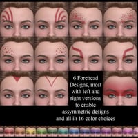 - 06 forehead shapes and 4 cheek shapes, all in 16 colors and most with separate left and right parts, to mix and match and create your own dramatic full-face make-up