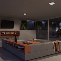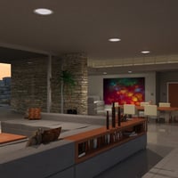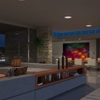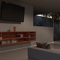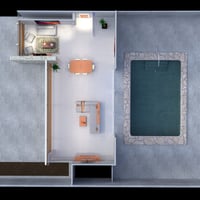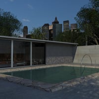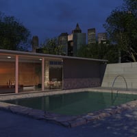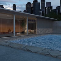 Ultimate Patio Home is a modern patio style home, with a single open layout design. This set was modeled after a real home. The home has a large glass wall on one side and a large glass door on the other, so it opens up to the outside. Outside the sliding glass door is an intimate pool area with pool. The other side has a concrete patio with a built in planter box. Recessed lighting on the interior.