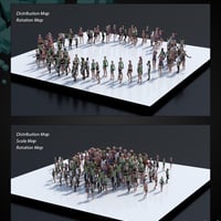 UltraScatter has a large number of options for automatically setting the distribution, scale and rotation of the instances. Perfect for placing trees and plants in a landscape or populating a street with figures.