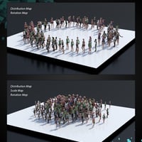 UltraScatterPro has a large number of options for automatically setting the distribution, scale, and rotation of the instances. Perfect for placing trees and plants in a landscape, populating a street with figures, or fill the sky with birds.