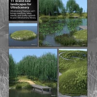"Features" define the ground terrain onto which you place your trees and plants. UltraScenery - Landscape Features Volume 1 brings you 11 new coastlines, lakes, islands and upland landscapes - with props - for your UltraScenery library: