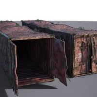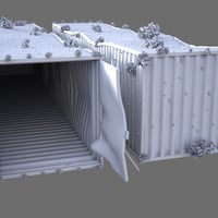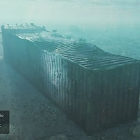 The rusted container is covered with algae, barnacles and has crayfish all over it. There are several props including cash, gold bar, silver bar, money bag, crate, and rack. The doors of the container can open and close.