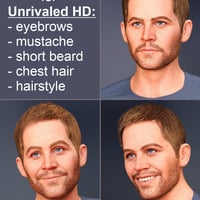 The additional product for Unrivaled HD includes five objects: eyebrows, mustache, short beard, chest hair, and hairstyle.