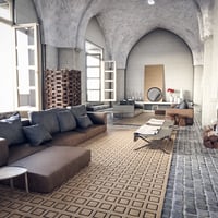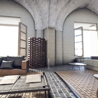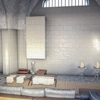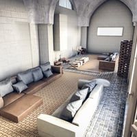 This room features a high ceiling formed with arches that please the eyes, and large windows bring tons of natural light and fresh air to your characters.