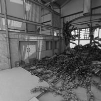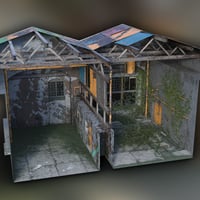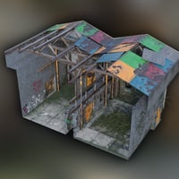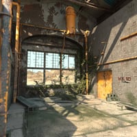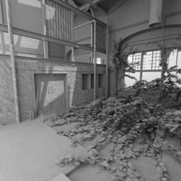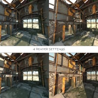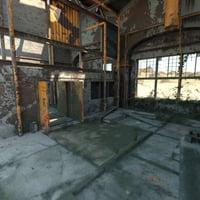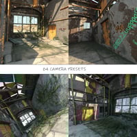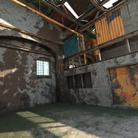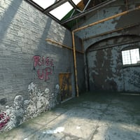 A highly detailed abandoned warehouse vignette environment.