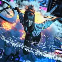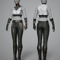 Urban Kunoichi Outfit for Genesis 9 is crafted for a feminine cyberpunk assassin who still wants to draw attention to lure you into her trap. Comes with heeled boots, gloves, mask, pants, top, and jacket, perfect to kitbash with.