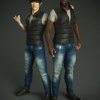 An Urban Outfit for your Genesis 2 Male(s) consisting of a pair of Retro High-Top Sneakers, Jeans, T-Shirt and Vest.
