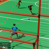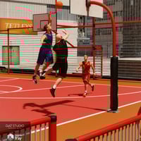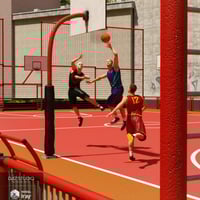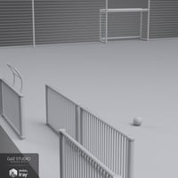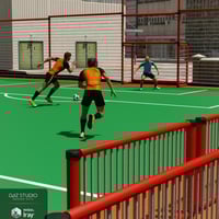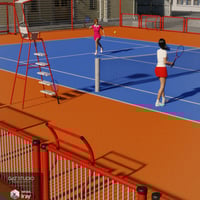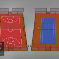 Set of three urban playgrounds, tennis, soccer (football) and basketball with corresponding accessories.