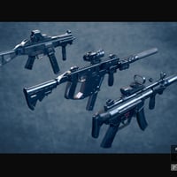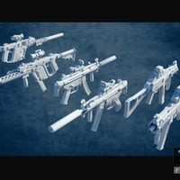 3 photorealistic submachine guns with movable parts, muzzle fire, and bullet shell. Smart props and hand poses included.