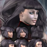 A modern hairstyle with morphing fringe from rolled to widow's peak. There are five textures included, with numerous diffuse variants, and movement and positioning morphs for added versatility.
