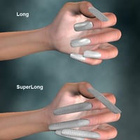 Add the glamor or ferocity of long detailed fingernails, claws and talons to all your V4 characters.