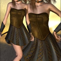 Valkyrie is a beautiful warrior clothing set for Victoria 4 that includes a dress, bracers, boots, headpiece, necklace and a spear.