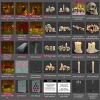 The Vampire Crypt and Props set is brimming with a gothic atmosphere. Candlelit niches filled with skulls, stone altars, and carved coffins, hanging roosts for vampires to rest upon...this extensive crypt environment is ready to go right out of the box. You can use it as is or create your own with the stand-alone walls, ceilings, and props.