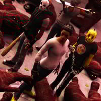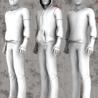 Vandals is a casual layered set for the Genesis 2 Male, perfect for fighting off invading hordes or just hanging out. In terms of clothing, the package includes sneakers, jeans, a thermal undershirt, a t-shirt and a sleeveless hoody. So far as accessories go, a hockey goalie mask, goalie stick, baseball bat (with nails), mysterious skull necklace, and long hook chain are also included. All clothing comes with multiple material options, both clean and covered in dirt and blood.