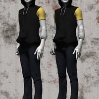 Beyond material options, the hoody is rigged both with its hood up and it's hood down. It also comes with an opacity setting to make the sleeve remnants more ragged.