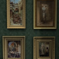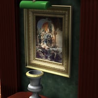 Nine props designed to work in the same room: a beautiful onyx ceiling lamp, four gilded framed pictures from the nineteenth century, two gorgeous rugs, a wall lamp to accent your pictures or other vertical space, and a gilded marble urn. Vaulted Hall Accessories is tailor-made for Vaulted Hall, sold separately or bundled. But you can easily place these nine props in any interior space that requires some class. Tables in renders are from 'Maps of the Empire.' sold separately or bundled.
