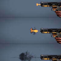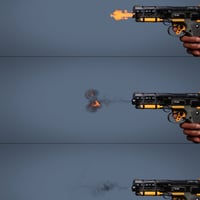 Also included are different shader effects that trade fidelity with render time, allowing easy customization of workload. Black Soot volumes render very fast, while Bright Scatter can create more vibrant plumes. An included bullet prop helps complete the shot with high-quality materials.