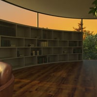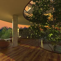 The central spiral walkway adds dynamic angles for your characters to interact with, while the transparent glass walls invite nature in, flooding the space with light and life.