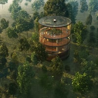 Step into a visionary dwelling where architecture meets nature in the Verdant Spiral Habitat — a four-story, cylindrical glass sanctuary wrapped in a majestic spiral ramp.