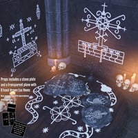 Each design was created with care and detail to reflect the true ritualistic spirit of voodoo tradition. To enhance the atmosphere, the set also includes a stone ritual plate and chalk-drawn veve symbols for each Loa, perfect for building authentic ceremonial environments. Every element has been designed with flexibility in mind, providing you with symbolic and artistic tools to enhance your storytelling.