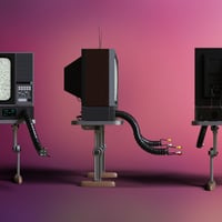 Videogrim is a standalone robot-like character. It comes with rigged legs, 2 fully rigged tentacular arms, and finger-like cables. It includes 19 options per arm for quick and easy posing and other movable small parts. There are 4 different colors, 18 preset faces for its screen, and a bloody wearable shell included in the product.