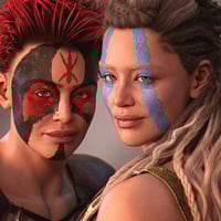 Prepare for combat with the Viking Makeup Shell and Jewelry Add-On for Genesis 9! It comes with 6 makeup options, a headpiece, and multiple piercing options.