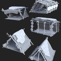 Viking Tents 1 is a collection of 5 rustic, makeshift enclosures suitable for all of your Nordic settlement scenes.
