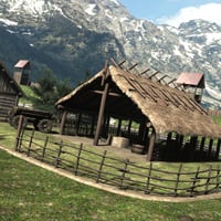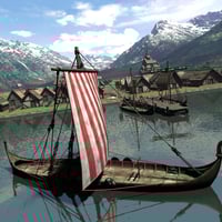 This bundle contains a large scale recreation of a viking village around 1400 AD plus all the props, including viking long ships to make it come back to life.