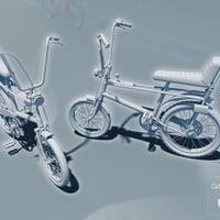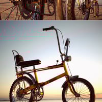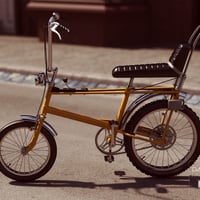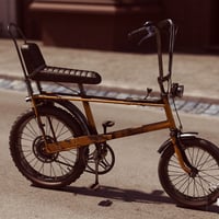 A traditional 1970s Pedal Bike, with complete rigging for the pedals, seat, handlebars, and chain rotation.