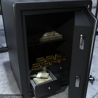The safe comes with a gold bar and a stack of money.