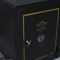 This vintage style safe has an opening door with moving handle and lock dial. Inside two drawers can be opened to store more valuables. The bolts in the side of the door also move so you can animate it locking.