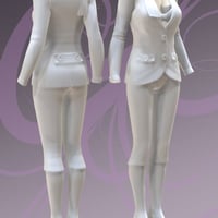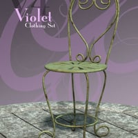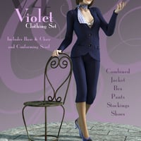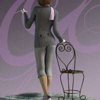 This stylish clothing set includes an all in one conforming figure with a jacket, bra, pants, stockings, shoes, as well as a conforming scarf. Also included in this set is a flagstone base and ornate metal garden chair, plus a light set and two poses.