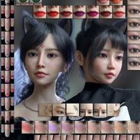 Vo Da Ji for Genesis 8.1 Female comes with 2 sets of morphs, 1 teen and 1 adult, including skin, eye colors, makeup options, lipstick options, nail colors, and more. The L.I.E. eyeliner and blush options can be used on any character.