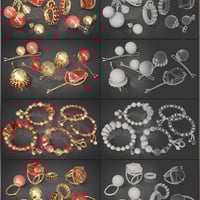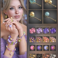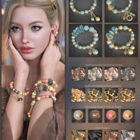 VRV Evie Jewelry is a fabulous new jewelry kit for making beaded and gemmed creations. It comes with 4 styles for each piece in the set including , bracelets, earrings, rings, and bobby pins as well as props to create your own or modify the existing ones. This set comes with 24 Glass bead shaders, 4 Metal , 25 Small Gem shaders, 9 Piece Materials, 25 Large Gem Materials as well to give you a infinite amount of color / style variations.