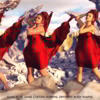 Simply load your favorite character, apply a pose, run the simulation and/or add any of the included custom morphs for drama and flair.