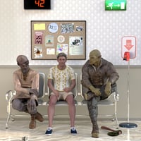 A versatile vignette of a waiting room that is quick and easy to set up, thanks to the included poses.
