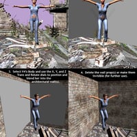 Substitute castle walls and dungeons, roof-tops, balconies, spaceship corridors and airlocks, or any other architectural objects for the walls and you can place V4 in an infinite variety of scenes and situations.Includes several free, simple wall props for use as fitting guides for architectural props or as stand-alone accessories. The walls are simple, un-mapped primitives so various blanketing textures can be applied by the user. See the ReadMe for quick instructions on easily fitting the poses to buildings, etc.