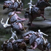 Cavalry accessories and accompanying poses for the Burrogen interacting with Genesis 3 Female, Genesis 3 Male, Genesis 8 Female and Genesis 8 Male figures.