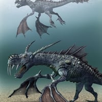Introducing the Water Dragon – an acquatic dragon species, living in the deep oceans. Head has morphs for jaw's shape, horn sizes, nasal horn size and head shape.