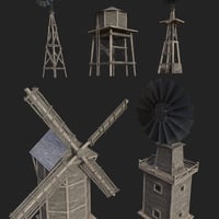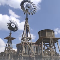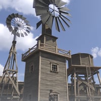 Water Pump Windmills 1 is a collection of 4 old fashioned engines for pumping water out of the ground and into a storage tower. Perfect for adding to your wild west scenes.