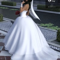 Wedding Dress is a conforming outfit for Genesis 3 Female(s) that comes in 8 parts: Wedding Dress, Gloves, Pumps, Left Garter, Right Garter, Earrings, Veil and Bouquet.