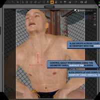 The geometry shell wet effects are visible in viewport without the need to render so the library of drops can be used fully interactive. This means you immediately see when you load a drop from the library and you can move its position in the character skin by using the HORIZONTAL OFFSET and VERTICAL OFFSET sliders in the Surface Tab without the need to render or open the Layered Image Editor. This only makes correct positioning of drops 10 times faster as well as visualization of final effects.