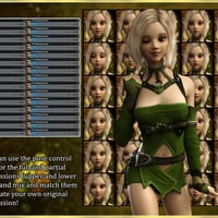USING FULL AND PARTIAL EXPRESSIONS: Using the partial expressions, you can move all the face, or just the upper and lower parts of the face, mixing both as you like, creating your own original expression for your renders.
