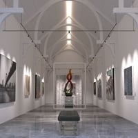 White Arches Art Gallery is a clean canvas for sophisticated renders. Elegant lighting and displays of photography and sculptures that invoke a pleasing interior to behold.