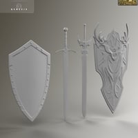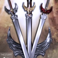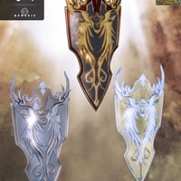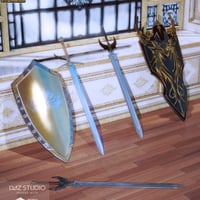 As for the weapons, two shields and two swords in two different styles. There is one set which is for any kind of tank warrior and the other is for your every day fantasy or medieval characters.