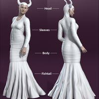 Does your evil queen need a perfectly demonic outfit to complete her night? Then this is the outfit for you! This beautifully crafted 'fishtail' dress with smart propped horns has a whole wealth of morphs to style your way. The skirt area is driven by morphs rather than bones to give a more realistic movement - please be aware that 'realistic' movement is key and you cannot do things like splits in this dress :)