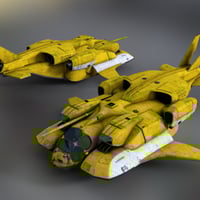 Optimized for bare-bones landing pads, rough terrain set-downs, and tight cargo contracts — the Wildcat is fast, dependable, and easily customized. Its heavy airframe, dual high-output reactor nacelles, and oversized ventral control surfaces allow confident VTOL handling from dusty exoplanet surfaces to orbital transfer docks.
