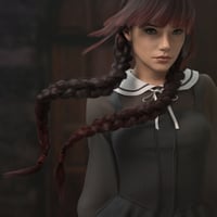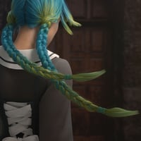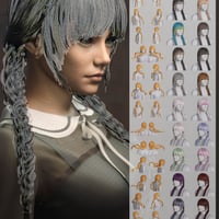 The hair conforms to head and neck movements while the two long plaits and fringe sections have an articulate rig consisting of 32 custom bones. Easy Pose ERC dial/sliders help fit your figure poses beyond the 30 sample pose presets.