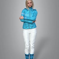 This suit is urban, elegant, fun, and handsome. Each piece has excellent details, the jacket is made of reflective polyester material, with jeans, and the boot, the texture and details are very fine, each product has ten colors for you to choose from, and the corresponding color of the boot also matches.