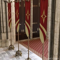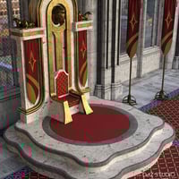 A detailed throne with ornate decoration, banners, leather and marble seating, lions head and griffin sculptures plus stepped dias, plus a carpet and separate banner stand which has a reverse option for a flipped banner design. Also included is a wearable sword prop for Genesis 8 Male. Comes in 2 separate colour options, red and blue, with 2 separate designs for the banners.